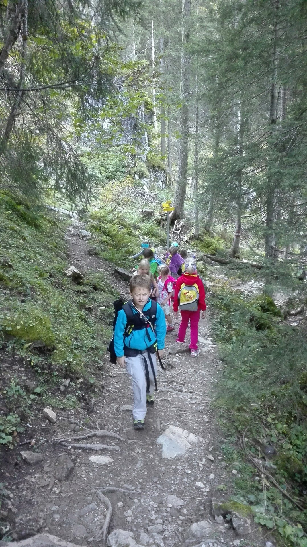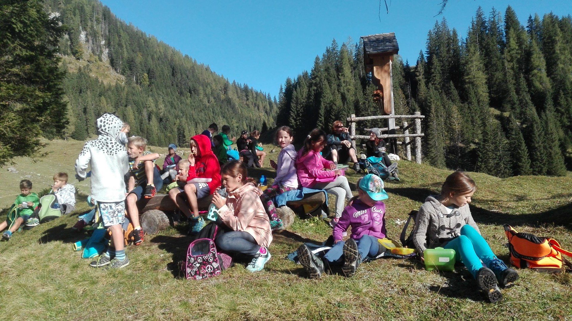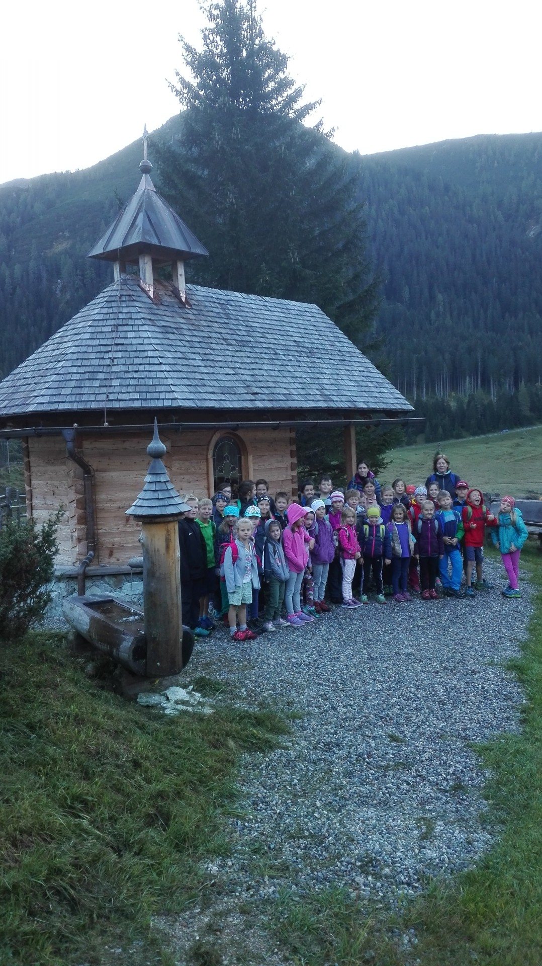 Bereits in der zweiten Schulwoche unternahm die gesamte Volksschule einen gemeinsamen Wandertag. Mit dem Postbus ging es auf die Gnadenalm. Nach der Besichtigung der neu errichteten Kapelle durften die SchülerInnen die Stationen bis zur Hintergnadenalm ausprobieren. Bevor es zum Johanneswasserfall ging, wurde ausgiebig gejausnet. Abschluss war natürlich der imposante Kletterturm.