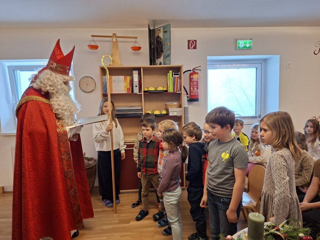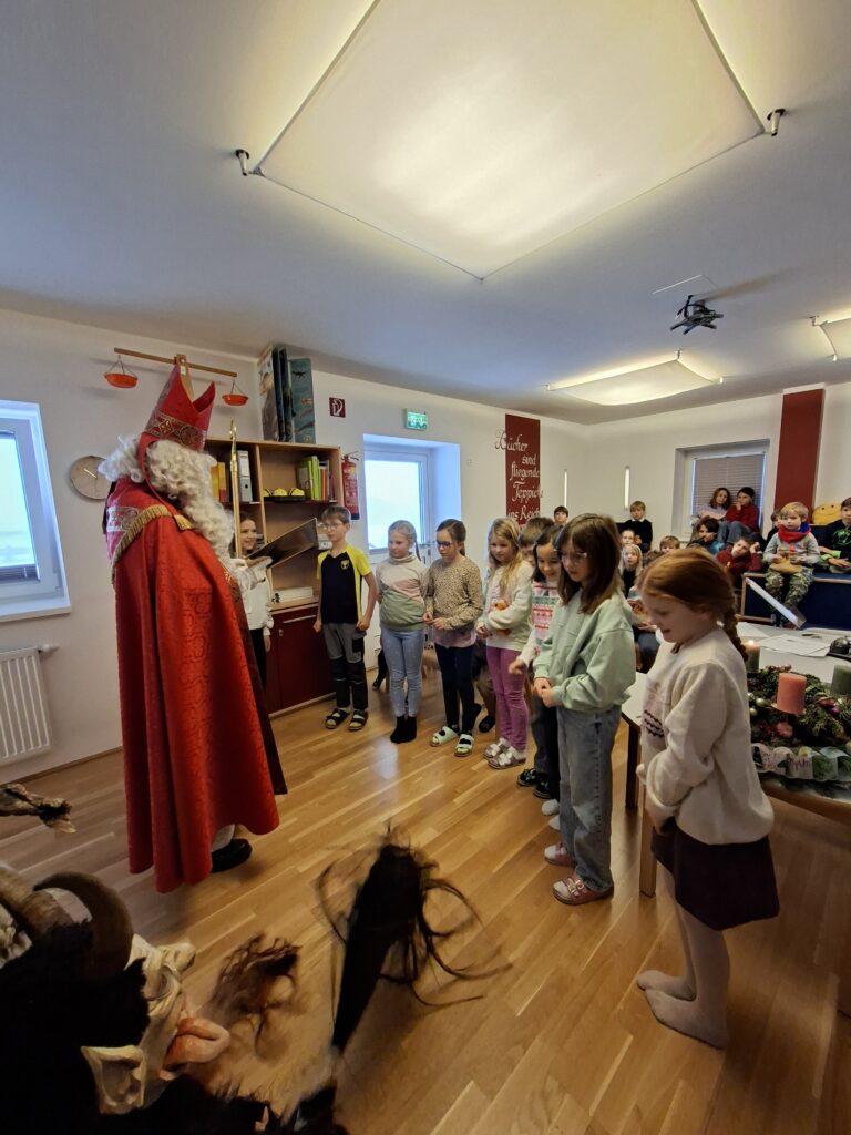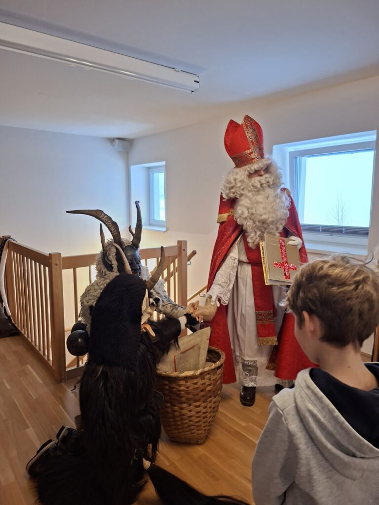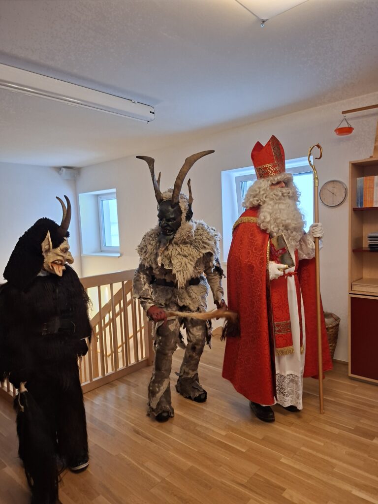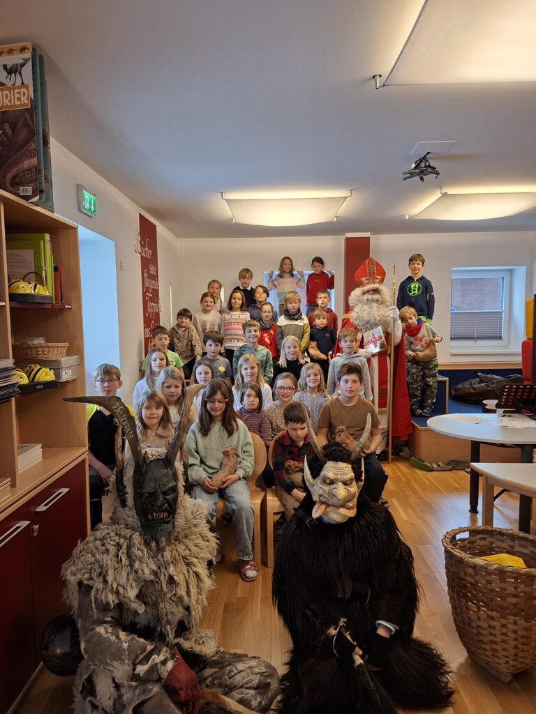 Am 5. Dezember bekamen die Schülerinnen und Schüler der VS Untertauern Besuch. Der Nikolaus und sein treuer Begleiter der Krampus schauten bei uns vorbei. Die Kinder trugen schöne Gedichte und Lieder vor und der Nikolaus hatte vieles Gutes über die Schüler*innen zu sagen. Der Krampus war zum Glück nur ein friedlicher Begleiter und half dem Nikolaus Geschenke zu verteilen. Vielen Dank für euren Besuch und die tollen Geschenke!