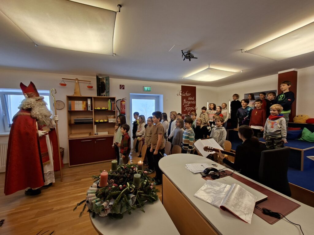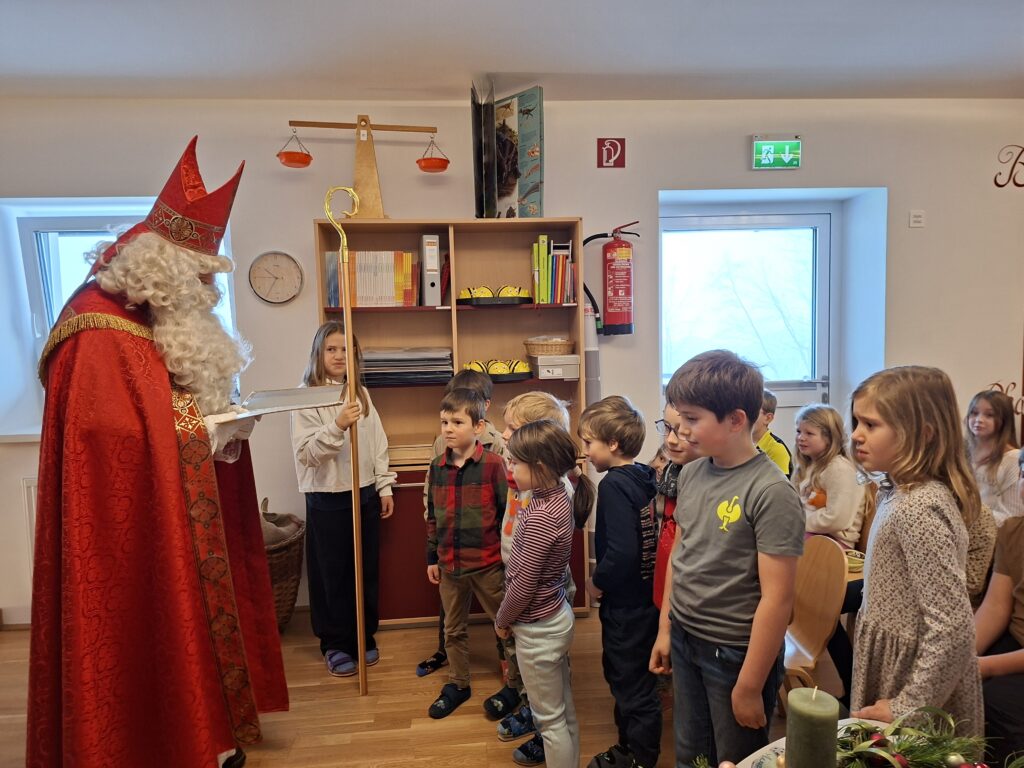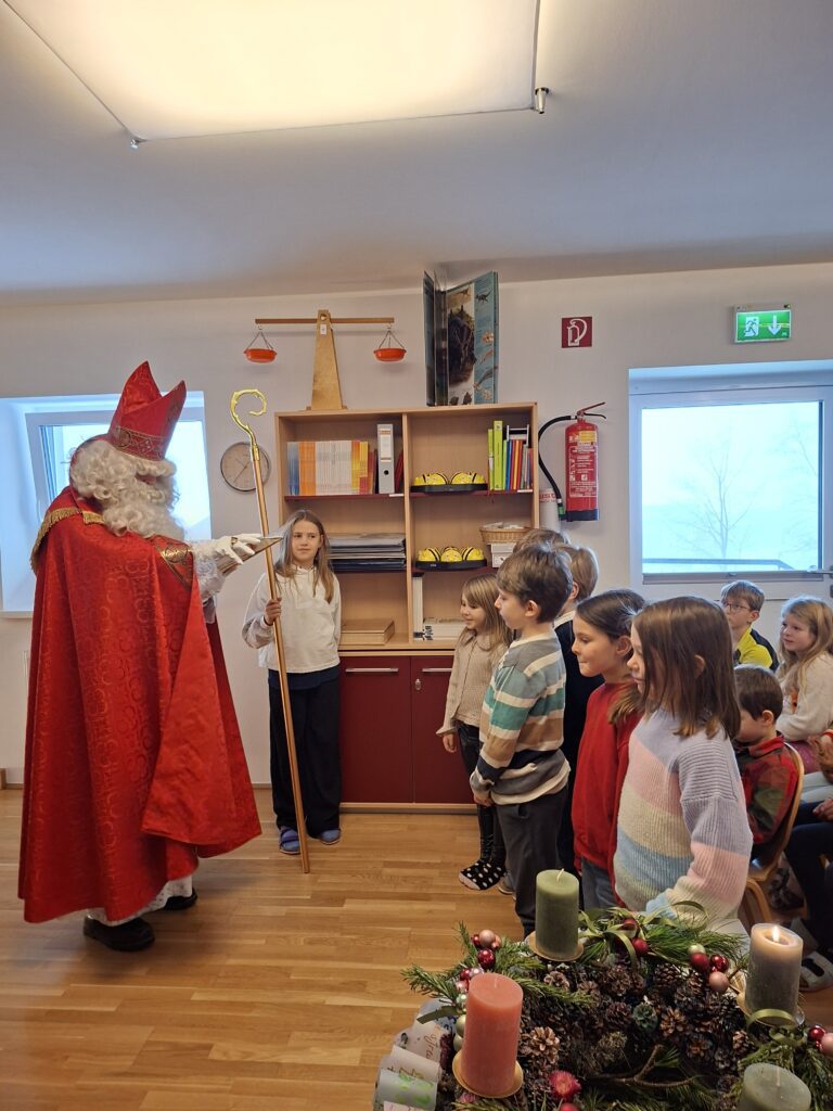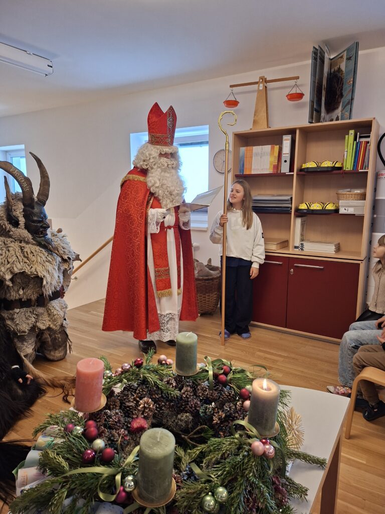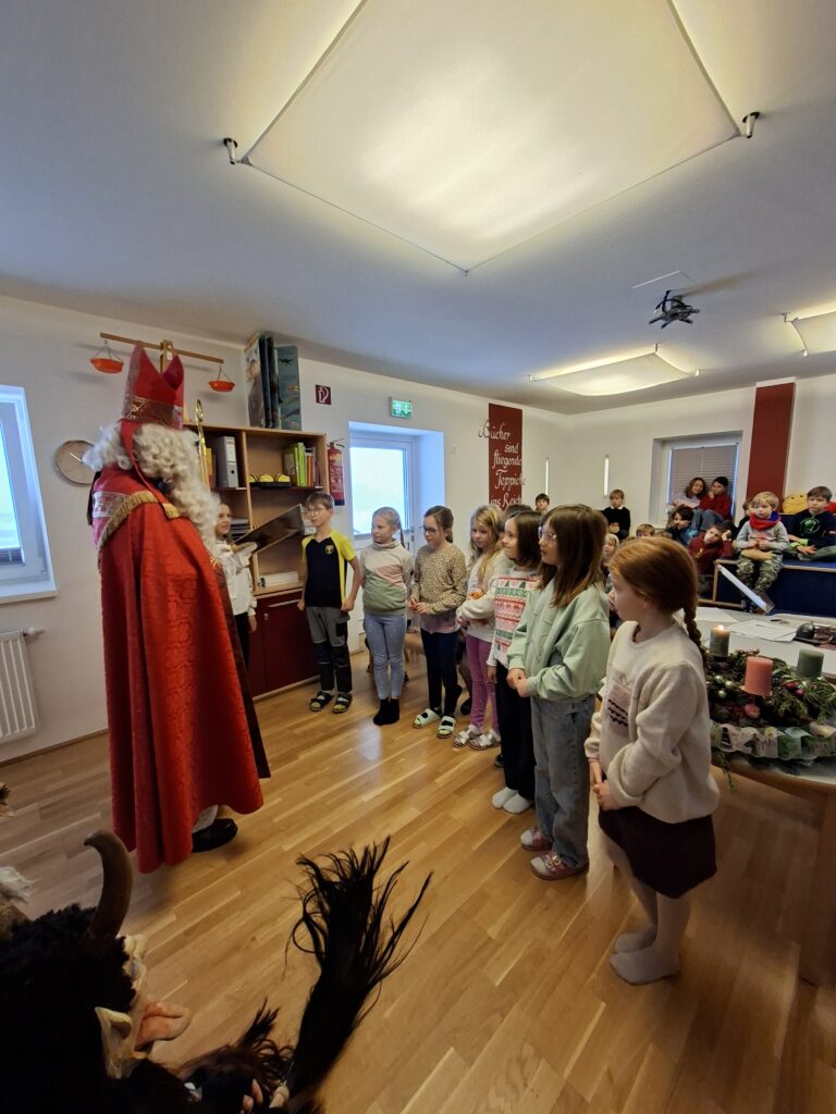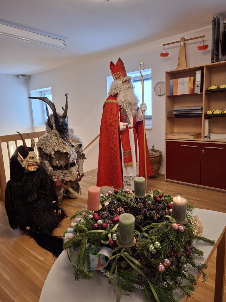 Am 5. Dezember bekamen die Schülerinnen und Schüler der VS Untertauern Besuch. Der Nikolaus und sein treuer Begleiter der Krampus schauten bei uns vorbei. Die Kinder trugen schöne Gedichte und Lieder vor und der Nikolaus hatte vieles Gutes über die Schüler*innen zu sagen. Der Krampus war zum Glück nur ein friedlicher Begleiter und half dem Nikolaus Geschenke zu verteilen. Vielen Dank für euren Besuch und die tollen Geschenke!