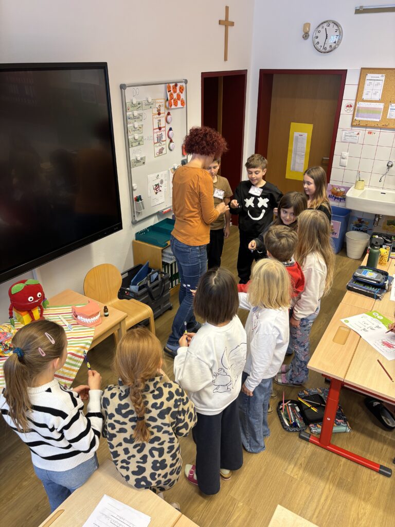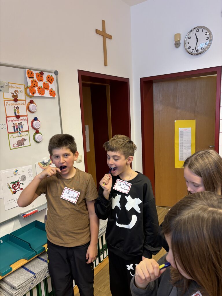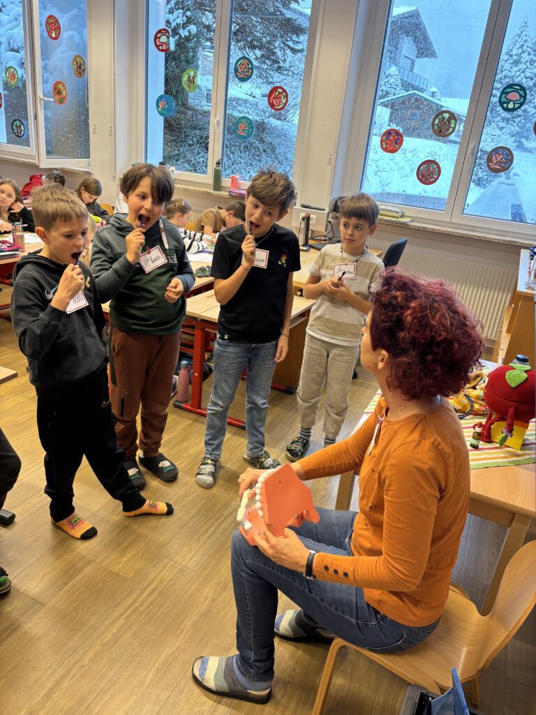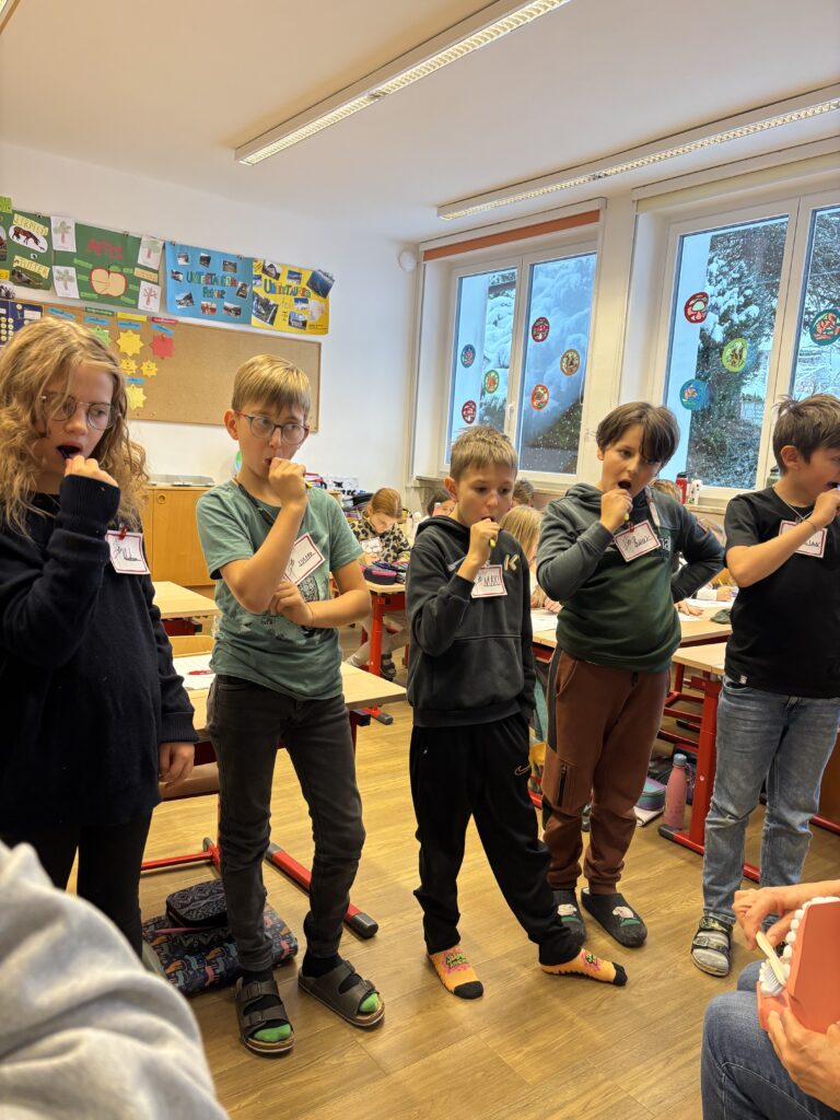 Auch heuer durfte unsere Schule wieder zwei spannende und lehrreiche AVOS-/Avolino-Stunden erleben. In der Klasse 1 beschäftigten sich die Kinder mit dem Unterschied zwischen Milch- und Erwachsenengebiss, dem Zahnwechsel sowie der richtigen Zahnpflege. Sie lernten die Zähne zu benennen, deren Funktion zu verstehen und erfuhren, wie Karies entsteht und wie man seine Zähne gesund hält.