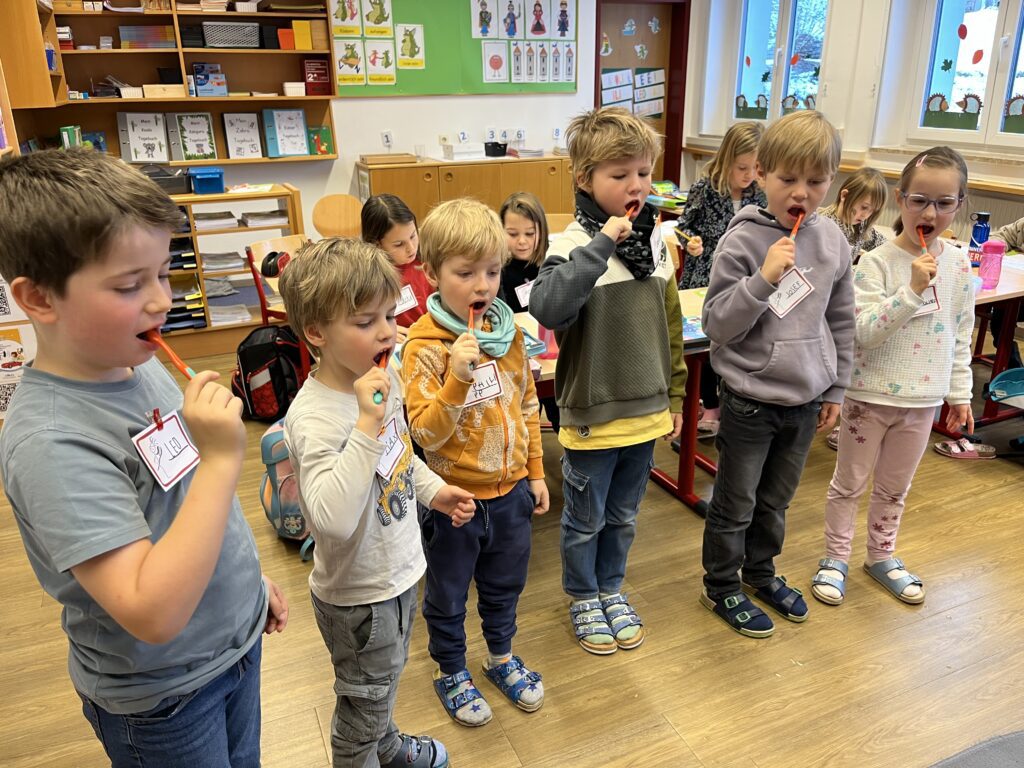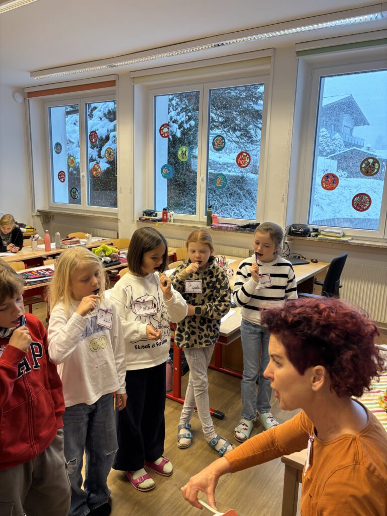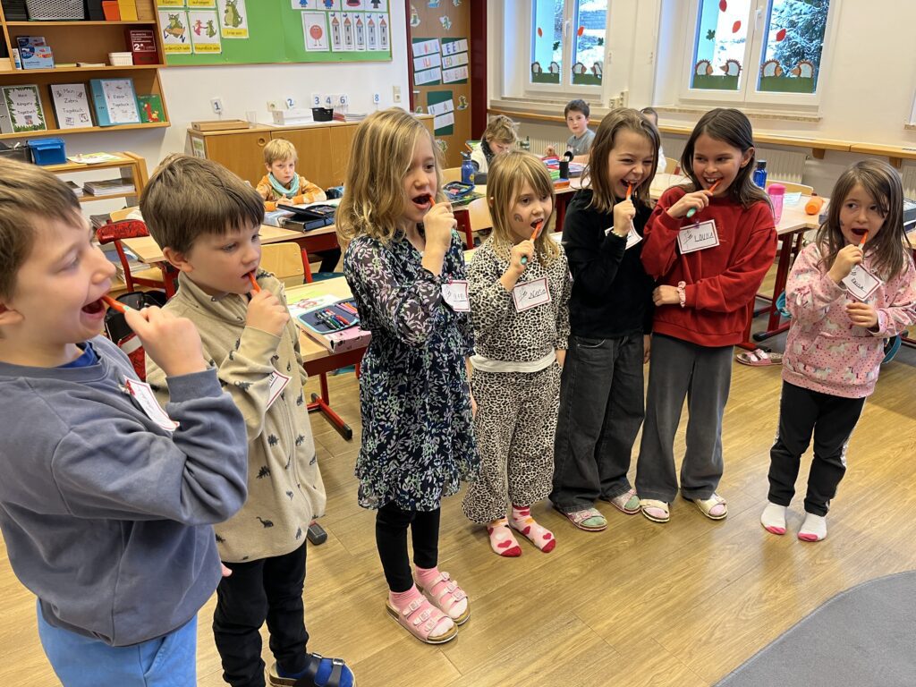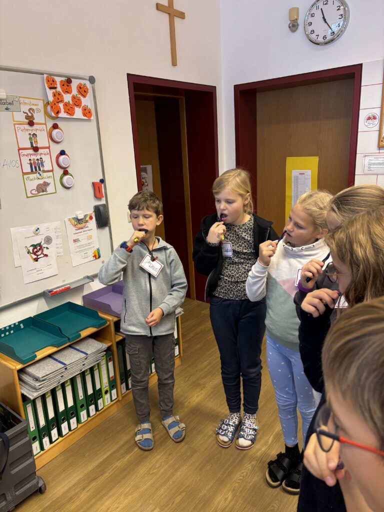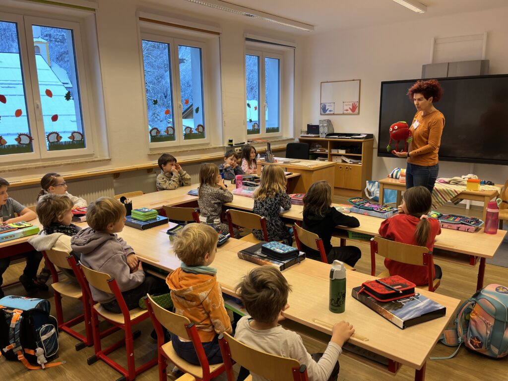 Auch heuer durfte unsere Schule wieder zwei spannende und lehrreiche AVOS-/Avolino-Stunden erleben. In der Klasse 1 beschäftigten sich die Kinder mit dem Unterschied zwischen Milch- und Erwachsenengebiss, dem Zahnwechsel sowie der richtigen Zahnpflege. Sie lernten die Zähne zu benennen, deren Funktion zu verstehen und erfuhren, wie Karies entsteht und wie man seine Zähne gesund hält.